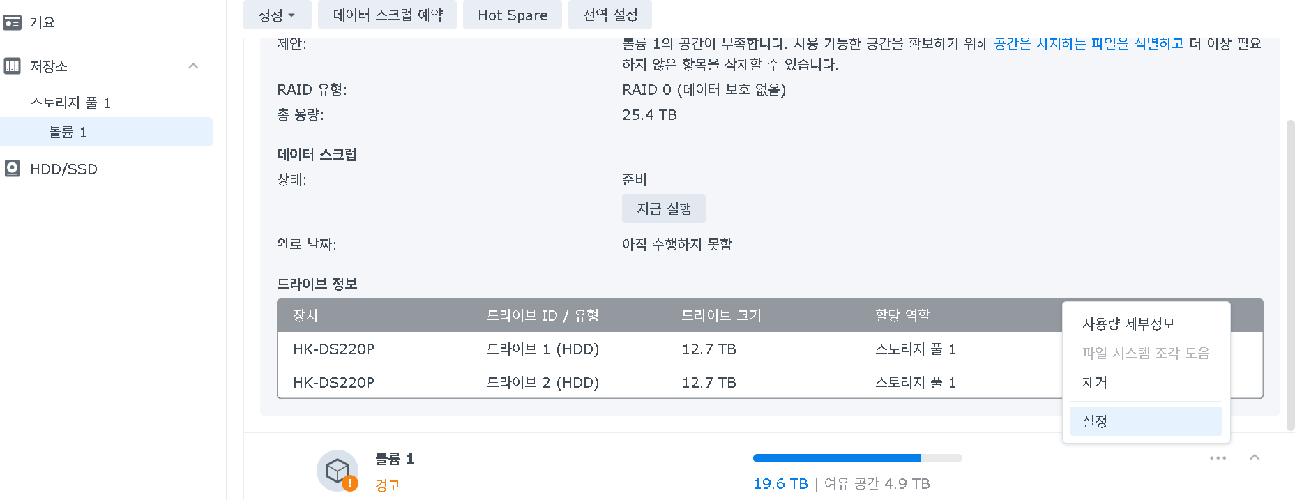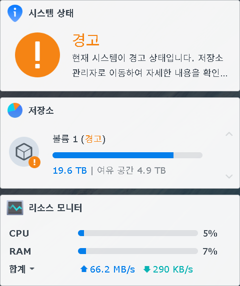 자료를 열심히 모으다 보니 어느새 NAS 의 저장 용량이 20TB 를 넘기 시작했다